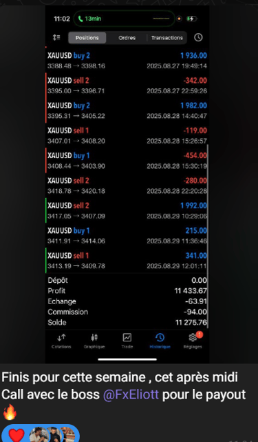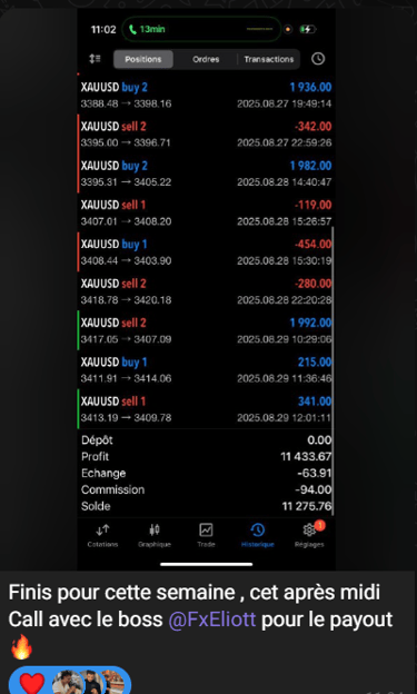 Le trading est une activité spéculative et peut générer à la fois des gains et des pertes. Aucune garantie n’est donnée quant aux résultats futurs, quelle que soit votre expérience. Les performances passées ne préjugent en rien des performances à venir. Chaque individu obtient des résultats différents, et aucune promesse de réussite ou de rentabilité n’est formulée.